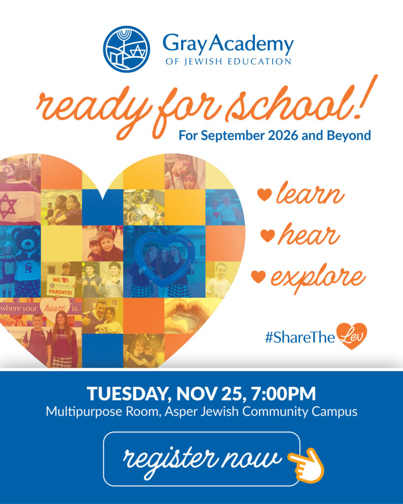 Junior Kindergarten* and Kindergarten** at Gray Academy are the beginning of a lifelong journey of curiosity, exploration and growth. Play-based, multi-language learning, small classes and a dedicated team of experienced educators provide a loving, welcoming Jewish environment where your child will begin to thrive academically, socially and Jewishly.